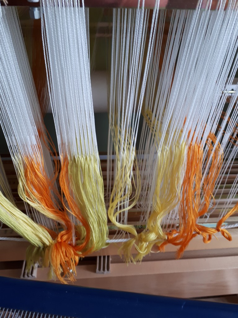 Once threaded it can be tied onto the front beam. I then weave an inch or two to check the sett and the threading are all good.